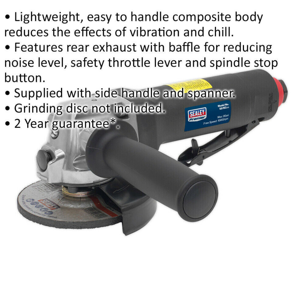 100mm Air Angle Grinder - Composite Body - 10000 RPM - 1/4" BSP - Side Handle Description